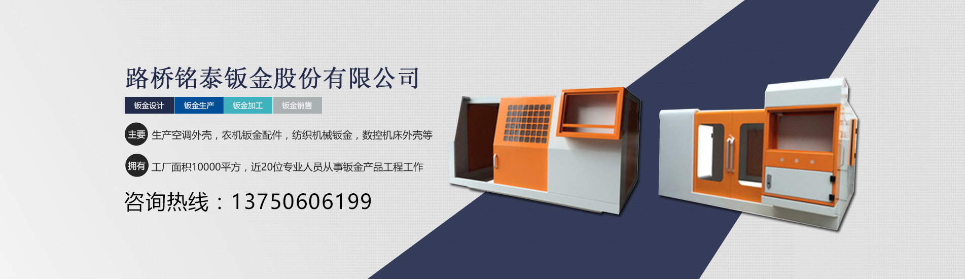 臺(tái)州市路橋銘泰鈑金股份有限公司是一家專業(yè)生產(chǎn)及加工,鈑金設(shè)計(jì),鈑金配件套生產(chǎn)。主要生產(chǎn)空調(diào)外殼,智能電控箱,農(nóng)機(jī)鈑金配件,紡織機(jī)械鈑金,螺桿式空壓機(jī)外殼,數(shù)控機(jī)床外殼,各種設(shè)備外殼等一系列鈑金產(chǎn)品。 公司擁有工廠面積10000平方,近20位專業(yè)人員從事鈑金產(chǎn)品工程工作,職工人數(shù)達(dá)150人。配備精良的開發(fā)與生產(chǎn)設(shè)備,現(xiàn)有主要生產(chǎn)設(shè)備:大型激光切管機(jī)(1臺(tái)),數(shù)控6000瓦光纖切割機(jī)(4臺(tái)),數(shù)控沖床(1臺(tái)),數(shù)控折彎?rùn)C(jī)(20臺(tái))大型液壓機(jī)(5臺(tái)),噴塑線(2臺(tái)),氬弧焊機(jī)(30臺(tái)),碰焊機(jī)(5臺(tái))等。 公司宗旨:一直以來以客戶為主的方針,不斷改善提高,務(wù)求讓客戶獲得專業(yè)、具成本效益的方案。歡迎各界朋友蒞臨參觀、指導(dǎo)和業(yè)務(wù)洽談。